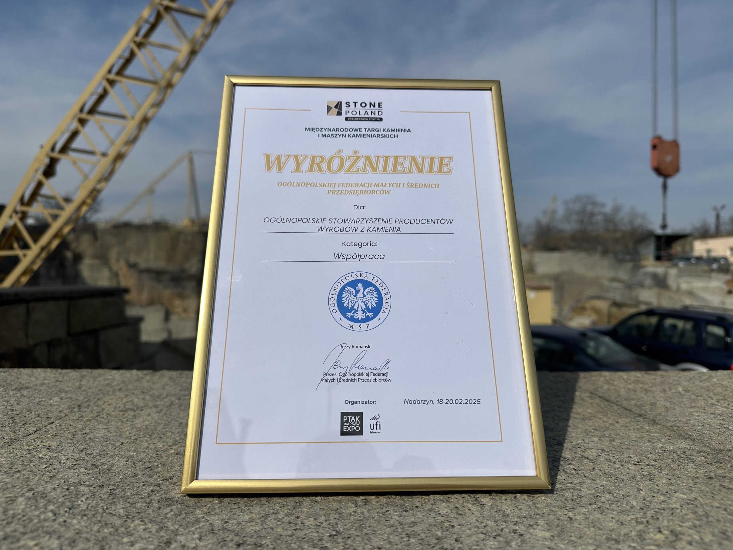 Vice Prezesi Alfred Marian Sroka oraz Jan Ziętek wzięli udział w ceremonii wręczenia Medali, którymi nagrodzono przedsiębiorstwa grające znaczną rolę w rozwoju branży kamieniarskiej.